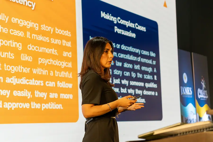 Acompañar a sus clientes hacia la estabilidad, la justicia y una voz dentro del sistema migratorio es lo que da sentido a su labor diaria.