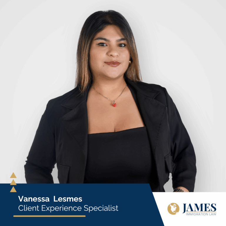 Vanessa Lesmes es Especialista en Atencion al Cliente en James Immigration Law, donde apoya a los clientes con empatía, profesionalismo y un profundo compromiso con el servicio. Su papel se centra en la creación de un ambiente acogedor y de confianza para aquellos que navegan el proceso de inmigración.