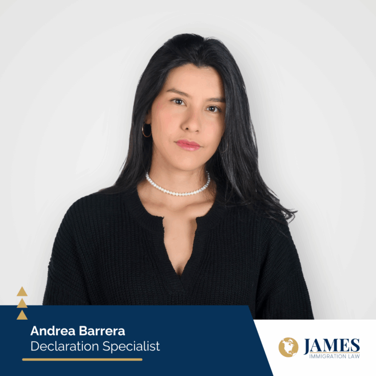 Andrea Melo Barrera es Especialista en Declaraciones en James Immigration Law, donde aporta su experiencia en psicología clínica y forense para apoyar a las personas en los delicados y a menudo traumáticos procesos de inmigración. Realiza entrevistas basadas en el trauma para comprender cada historia desde la experiencia vivida por el cliente y colabora con el equipo legal para construir argumentos jurídicos individualizados con claridad y cuidado.